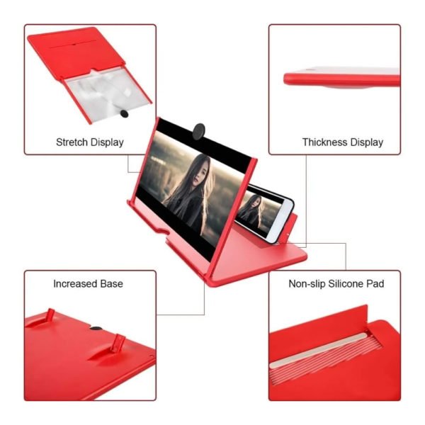 Este es un soporte de escritorio para teléfono móvil que protege los ojos y que puede agrandar la pantalla del teléfono móvil, amplificador de vídeo de aumento 3D. Experimente la mejor experiencia de visualización, aumenta la pantalla de tu smartphone de 3 a 4 veces para que sea más fácil ver películas, vídeos, o noticias en tu teléfono. Amplia compatibilidad. Este producto es adecuado para modelos de teléfonos móviles de menos de 7 pulgadas. Hecho para lentes generales, haciendo que la imagen sea más clara, moderna y científica.
