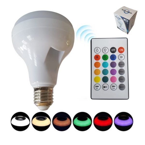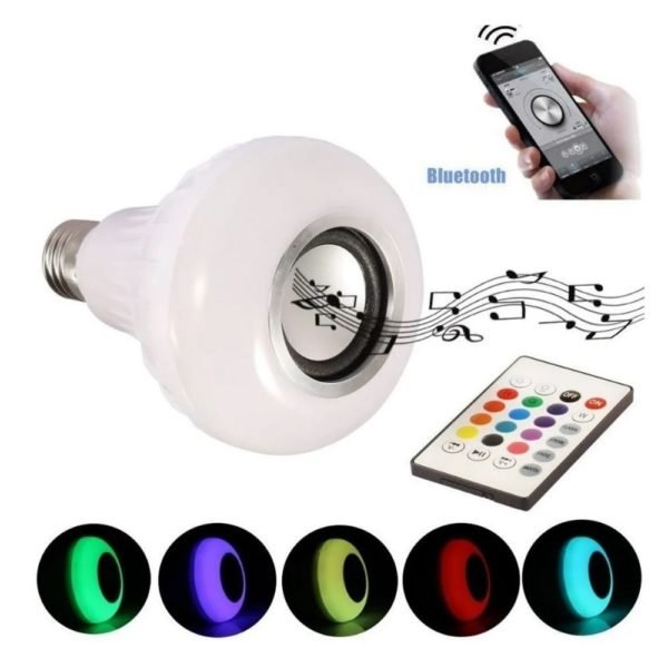Nuevo bombillo led con parlante bluetooth fácil de manejar con control remoto, con este dispositivo puede escuchar música, apagar o encender la luz y cambiar los diferentes colores de luz.