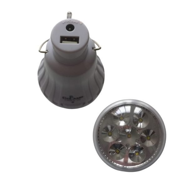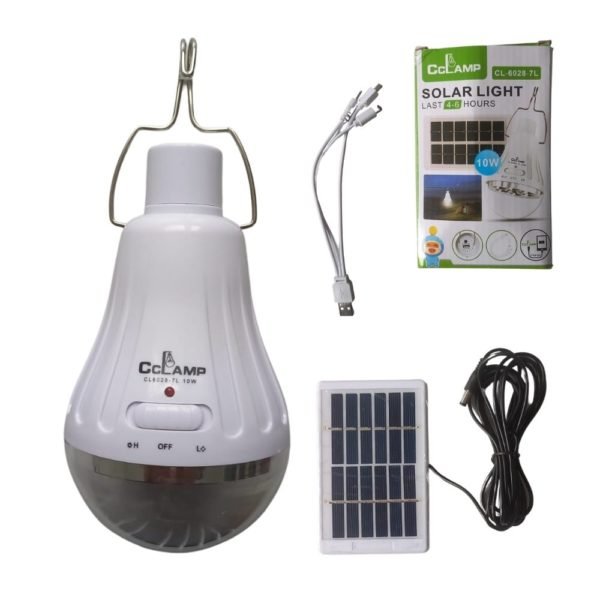 Nuevo Bombillo Recargable Panel Solar Banco de Carga CCLamp CL-6028-7L ilumina interiores y exteriores sin necesidad de energía eléctrica, ideal para lugares de difícil acceso de energía y actividades nocturnas. El bombillo recargable funciona como banco de carga para el celular y se recarga con el panel solar.