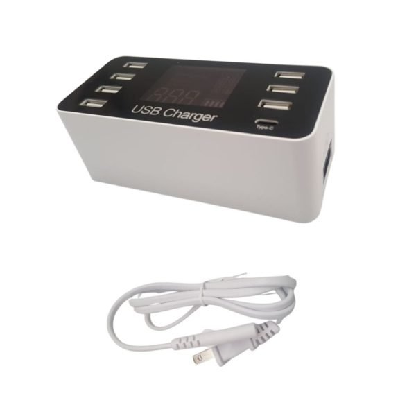 Estación de carga de 7 puertos USB y 1 puerto tipo C, puede cargar varios dispositivos simultáneamente.