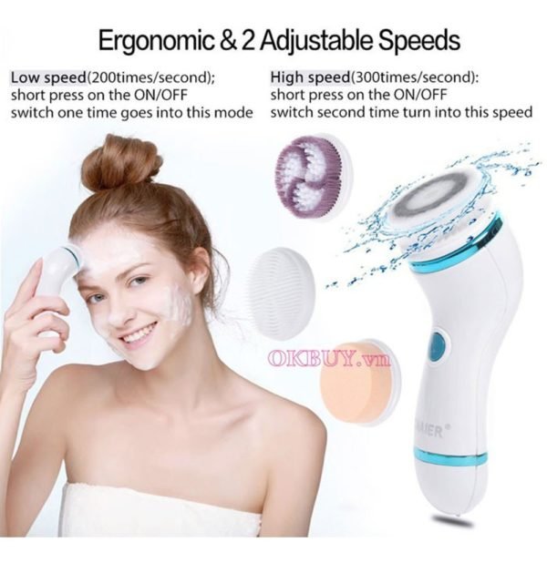 1. El Cepillo facial eléctrico CNAIER es multifuncional, 100% resistente al agua y tiene 2 configuraciones de velocidad, operación de un toque y 4 cabezales de cepillo diferentes.