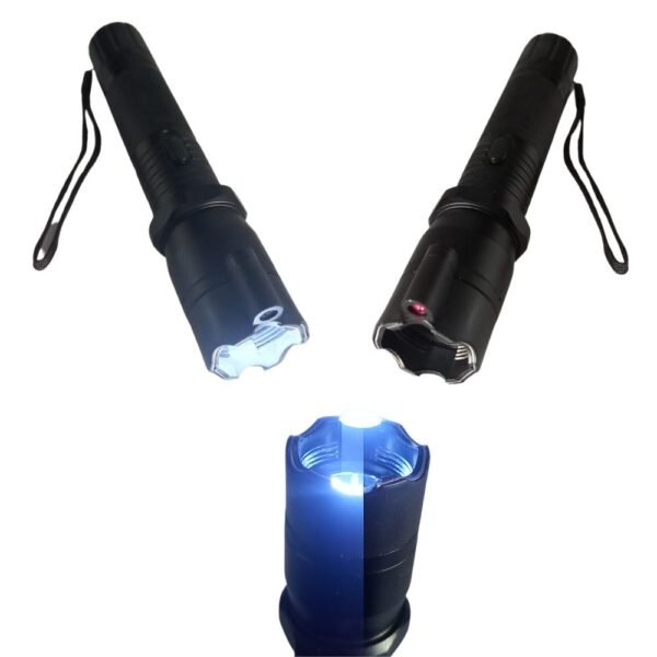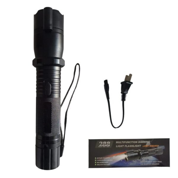 Poderosa linterna recargable con concentración de luz LED, cuenta con 3 modos de iluminación. Tiene linterna, laser y taiser con descarga eléctrica para defensa personal. Trae batería interna recargable y su respectivo cable cargador de pared, Ideal para su seguridad en carretera, lampara auxiliar del auto, deportes como tiro al blanco, pesca, paseos, camping, caminatas, e infinidad de usos.