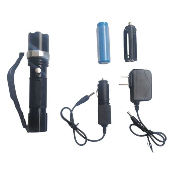 Poderosa Linterna Recargable Power Style con concentración de luz LED y zoom. Cuenta con zoom de luz y 3 modos de iluminación. Trae batería de litio recargable, un cable cargador de pared, un cargador de carro y adicional adaptador para poder usarla con 3 pilas AAA. Ideal para su seguridad en carretera, lampara auxiliar del auto, deportes como tiro al blanco, pesca, paseos, camping, caminatas, e infinidad de usos.