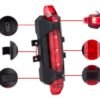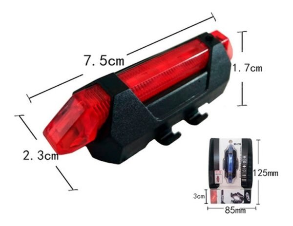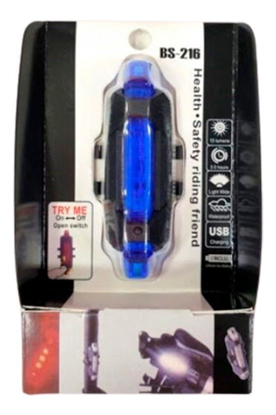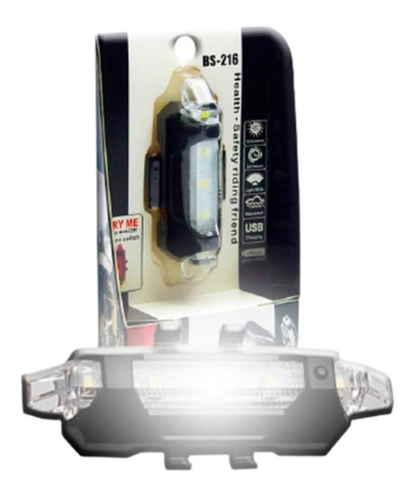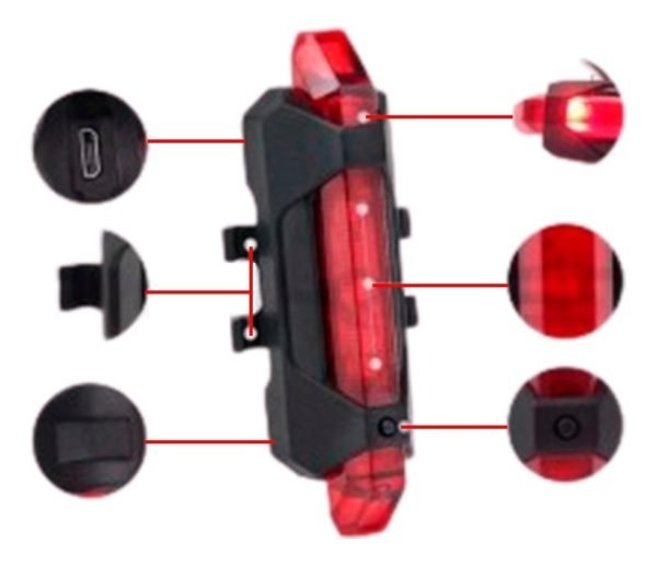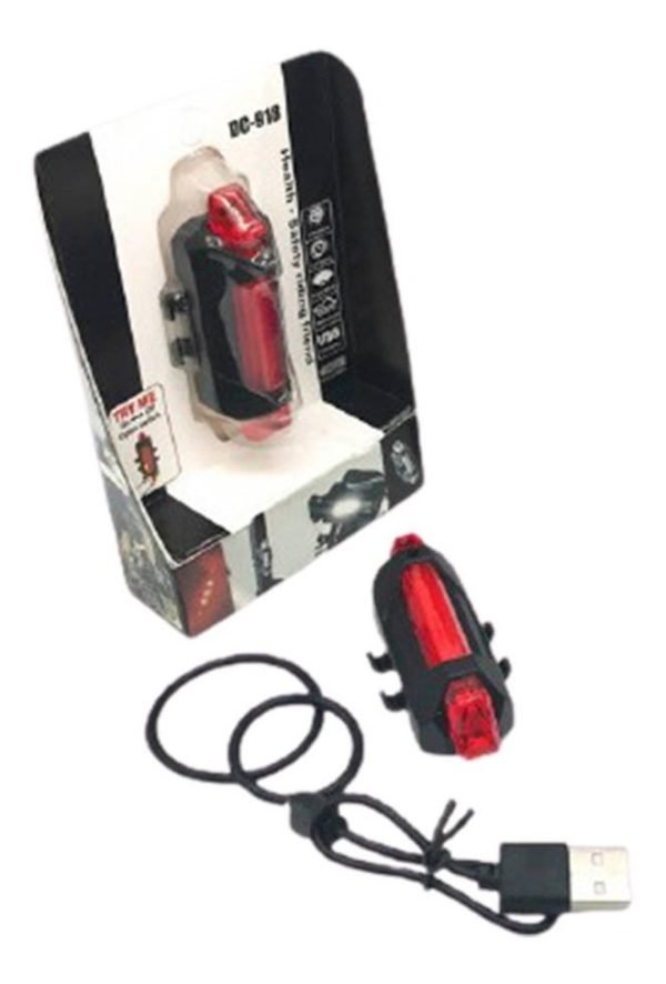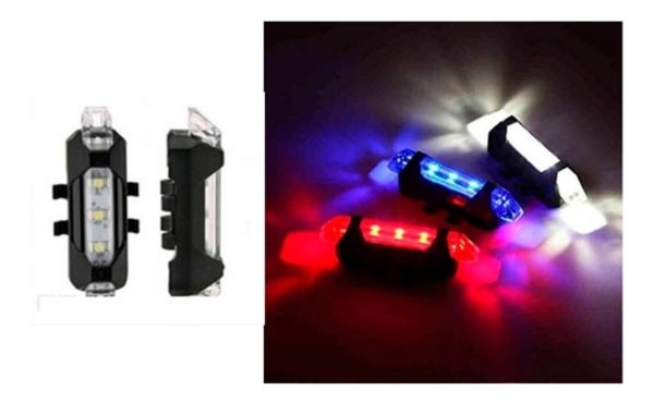 Luz Led Recargable Impermeable de alta potencia con pantalla de acrílico transparente, visible por la noche, durante el día todavía visible, mientras que el amplio ángulo de visión de 180 grados, proteja su seguridad, impermeable, cuatro tipos de modos de flash. Interfaz USB para cargar y tiempo de carga 2 horas, el tiempo de descarga es de aproximadamente 5 horas. Diseño de correa de silicona, adecuado para varios grosores del tubo.