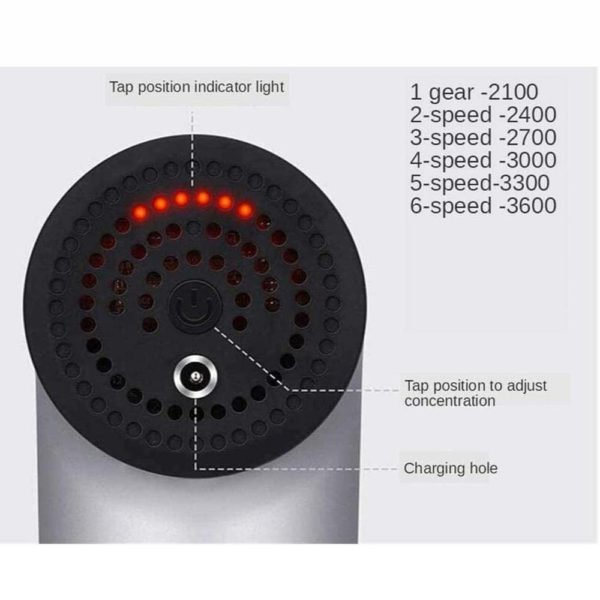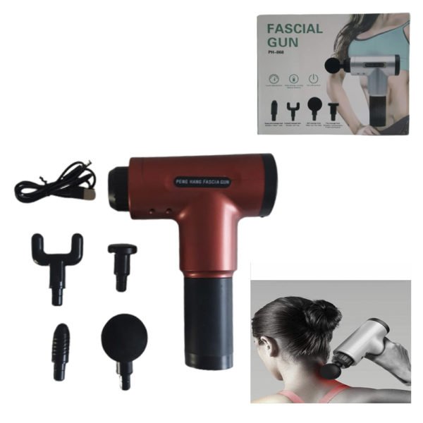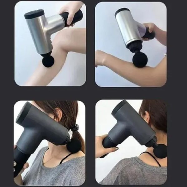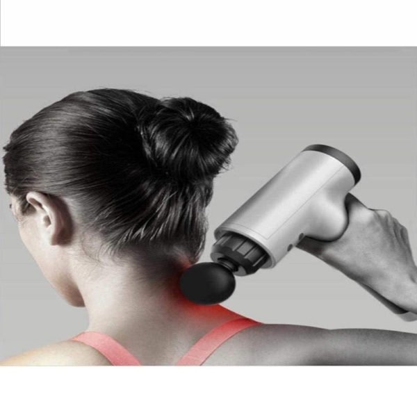 Masajeador recargable muscular para masajes de fitness y bienestar. Los diferentes cabezales de masaje pueden proporcionar una experiencia cómoda, de acuerdo a la ubicación del musculo puede elegir el cabezal de masaje. Aumenta a velocidades más altas para grupos musculares más grandes y fuertes. El dispositivo ayuda a reducir el tiempo de recuperación, aumenta el flujo sanguíneo, limpia el ácido láctico, libera nudos musculares, rompe el tejido cicatrizante, aumenta el rango de movimiento.