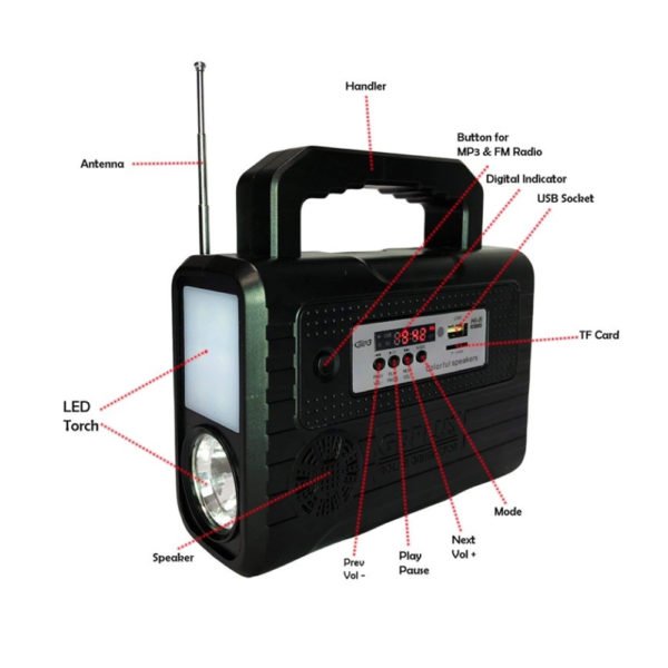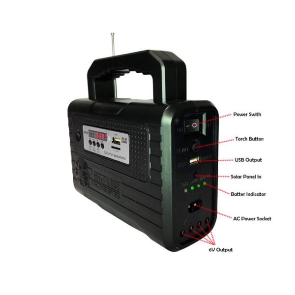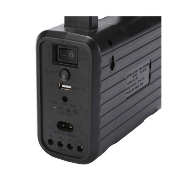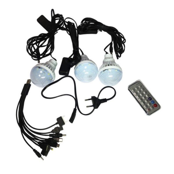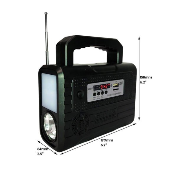 Este sistema de iluminación solar es ideal para acampar, viajar, actividades al aire libre o fallas de energía. Nunca más te quedes en la oscuridad. Puedes conectar hasta cuatro bombillos para que ilumines tu hogar, finca, bodega, o el lugar que necesites. También puedes recargar tu celular o tableta, incluye cable multiusos para cargar una gran variedad de dispositivos. Puedes recargar la batería del kit, conectándola a la corriente eléctrica o poniendo el panel al sol. Además, cuenta con una potente linterna incorporada para que nunca te falte luz y viene con MP3: radio FM, lector de memoria USB y Micro SD.