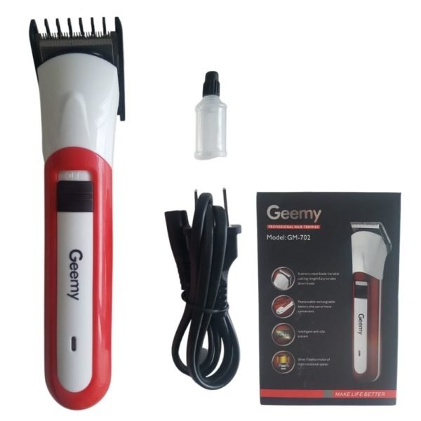 Patillera Cortadora de Pelo Inalámbrica Geemy GM-702 perfecta para usar en casa, con 1 guías de corte baja para hacer cortes y rasuradas sin igual. Es recargable y muy elegante. Con la guía que incluye puede tener un corte muy detallado y elegante. Sirve también para perfilar el cabello. Es ideal para piel sensible, protege la piel de raspaduras y cortes no deseados.