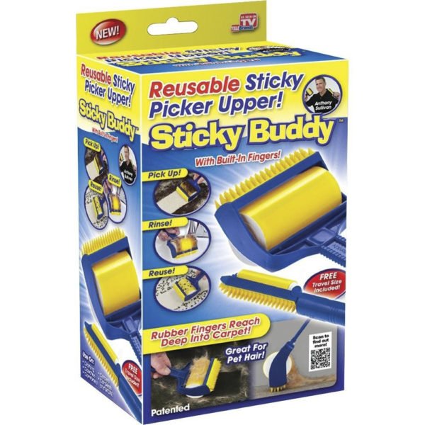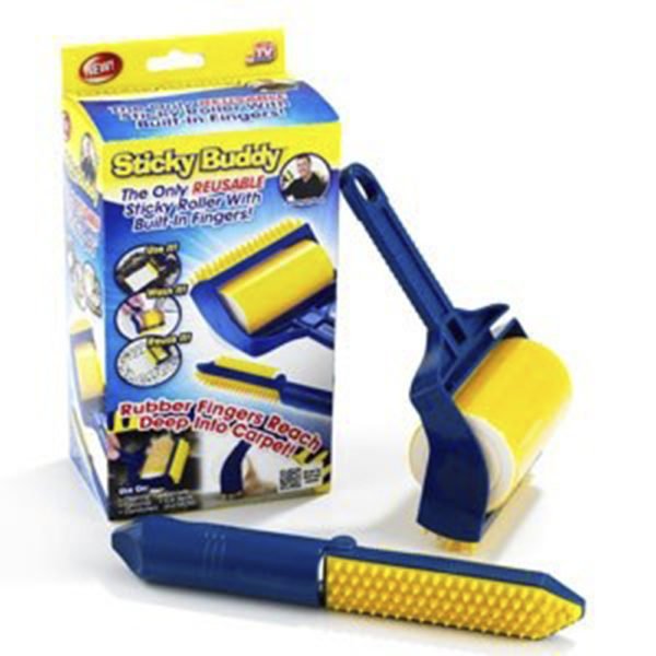 Sticky Buddy es un rodillo pegajoso reutilizable con dedos de goma incorporadas. El adhesivo diseñado científicamente está creado para ser suave con su ropa delicada, pero lo suficientemente resistente para trabajos pesados como alfombras y su coche!
